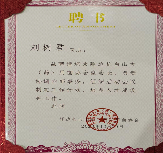 总负责人:刘树君为延边西大坡农林特产有限公司总负责人,延边长白山食(药)用菌协会副会长,多次获得先进生产者、工作者、优秀党员、创先争优先进、吉林省森林防火先进、延边朝鲜族自治州绿化先进、汪清县“十一五”劳动模范等荣誉称号。