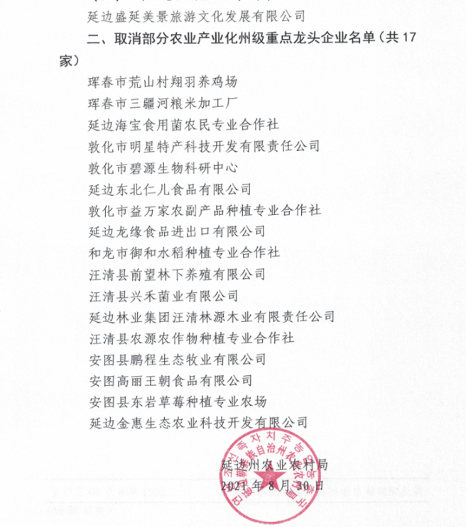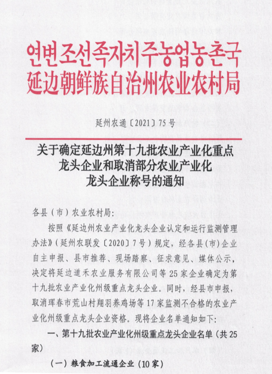 2.是否龙头企业和地标企业(相关的牌匾证书):延边州龙头企业