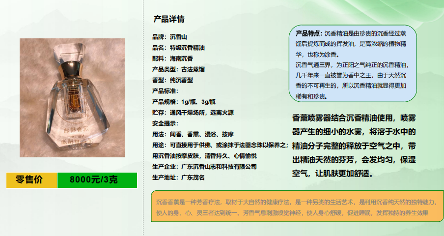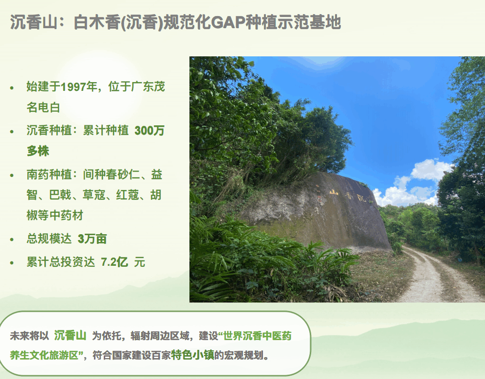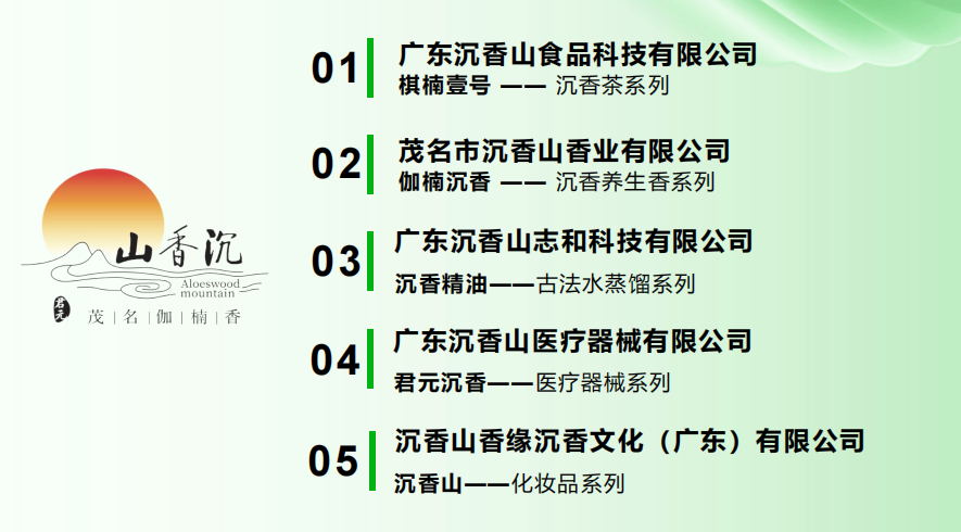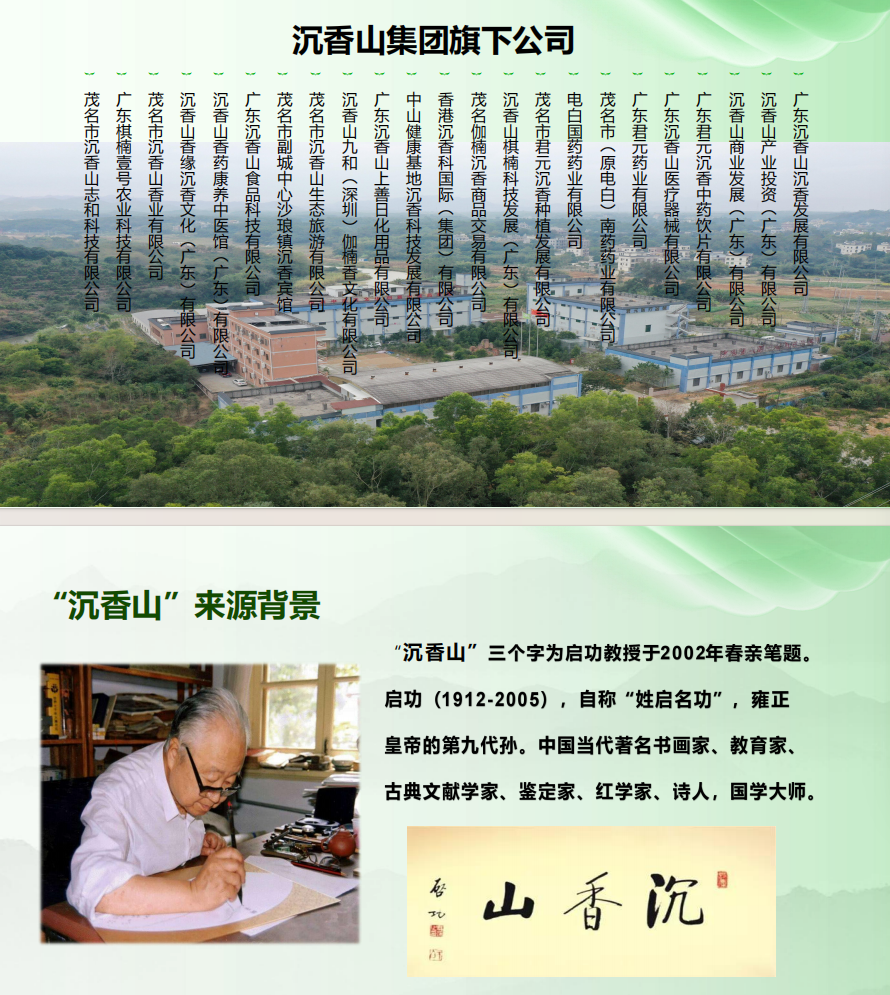 沉香山(集团)成立于1997年,是一家规模化、产业化、标准化、国际化的沉香产业集团。公司成立以来,本着“为员工谋福祉,为股东创价值,为企业谋发展、为社会人工种植,响应国家号召精准扶贫、振兴乡村,助力万亿级生态沉香全产业链发展。沉香山集团业态分布涵盖一二三产业,产品类别从原材料到深加工乃至高新技术产品研担责任”的宗旨,围绕党和政府发展策略,